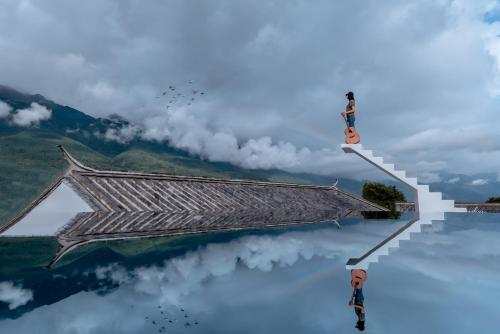 大理空山语 风眠艺术海景酒店 Dali Kongshanyu Art Seaview Hotel has an outdoor swimming pool, garden, a terrace and restaurant in Dali Airport. 27 km from Nanzhao Dehua Monument and 27 km from Guanyin Hollow, the property offers a bar and barbecue facilities. The accommodation features a 24-hour front desk, airport transfers, room service and free WiFi throughout the property.