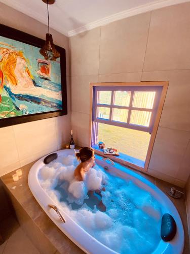 Chalés Encanto Das Pedras - Chalé Super Luxoにはホットタブがあります。