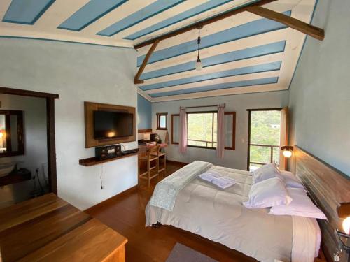 Pousada Vilarejoのお部屋にはワードローブ、薄型テレビ、専用バスルーム、ベッドリネン 、タオルが備わります。この宿泊施設の一部のお部屋からはプールの景色が望め、すべてのお部屋にバルコニーがあります。それぞれのお部屋にミニバーが備わります。